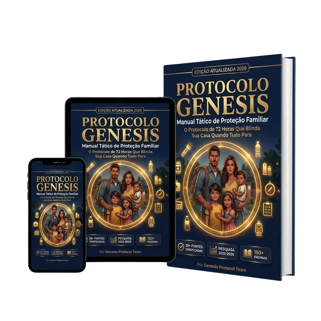 O Protocolo Gênesis é o sistema completo de preparação para a realidade brasileira. Qualquer família implementa em um único fim de semana, sem equipamentos caros, sem treinamento especializado.